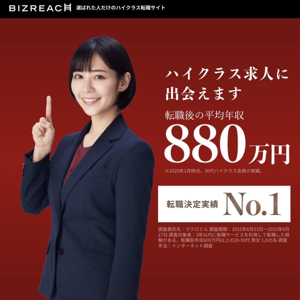 ビズリーチはテレビCMなどでもよく見かける有名エージェント会社ですね。