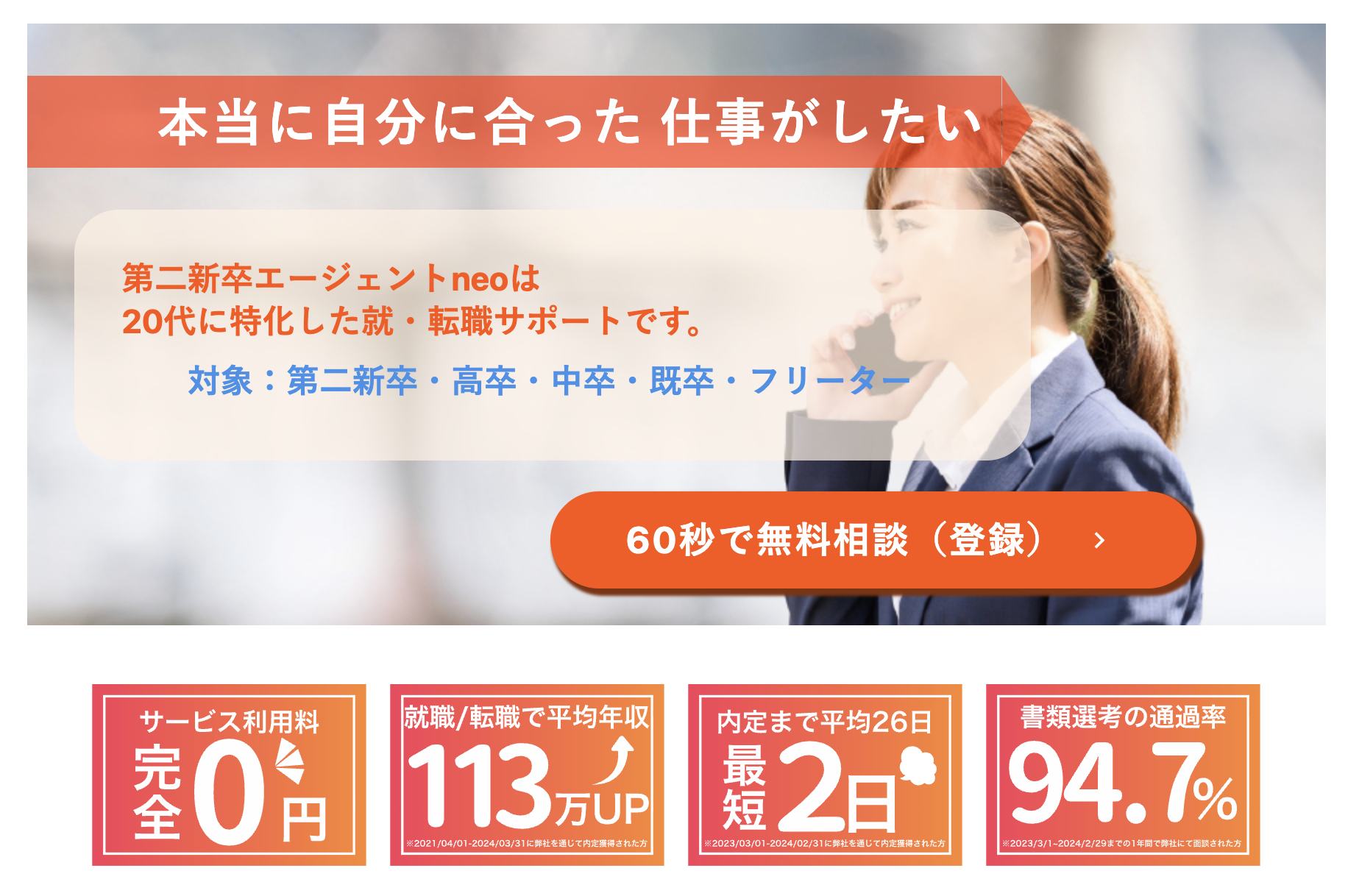 第二新卒エージェントneoの口コミ(⭐️平均4.8/105件)