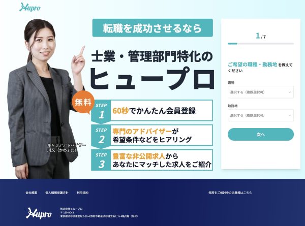 ヒュープロには、教育体制が整った優良企業の未経験OK求人が多く登録されています。