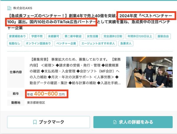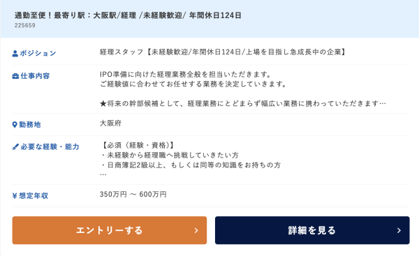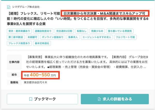 経理専門というだけあって、ハローワークやリク◎ビといったところで探すより年収などの条件がかなり良い求人が多いですね。
