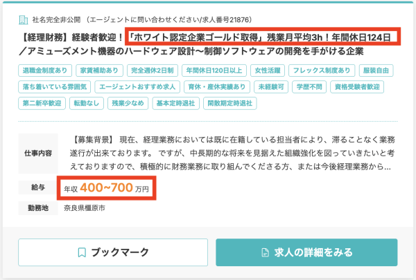 ↑こちらは一般財団法人日本次世代企業普及機構(通称ホワイト財団)の「ホワイト認定企業ゴールド」を取得している、ワークライフバランス重視の企業求人です。
