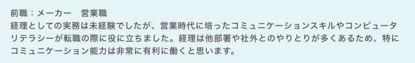 実際にヒュープロを利用して経理職に転職した未経験者の口コミ評判を抜粋して紹介します。