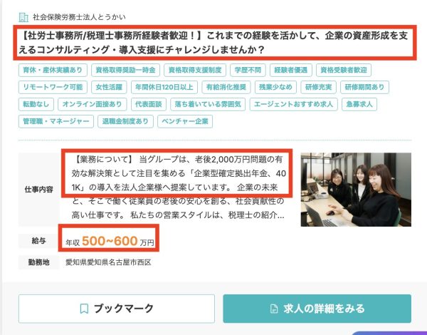 これまで社労士事務所や税理士法人で経験を積んできた人にとっては、スキルを広げるチャンスになるでしょう。