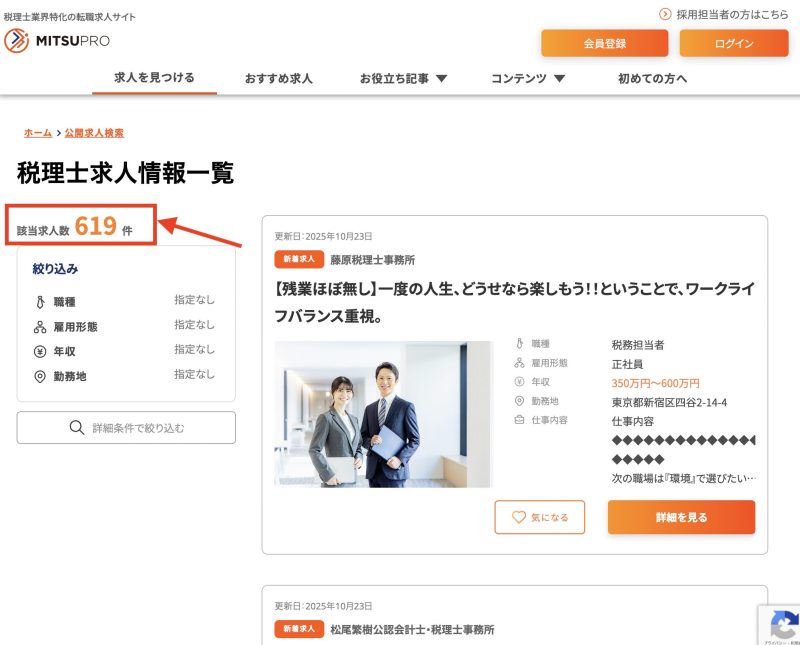 (2025年10月現在のミツプロの求人検索数)