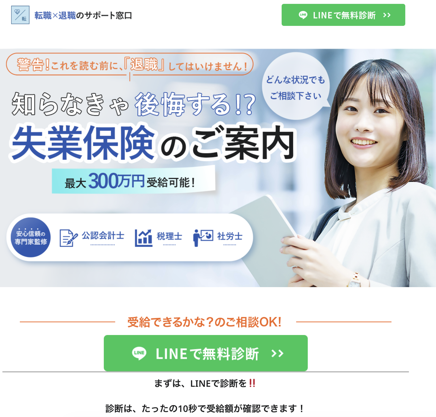 特徴 弁護士・社会保険労務士が監修、自己都合退職でも給付金サポート可能(4,500名以上の利用実績)